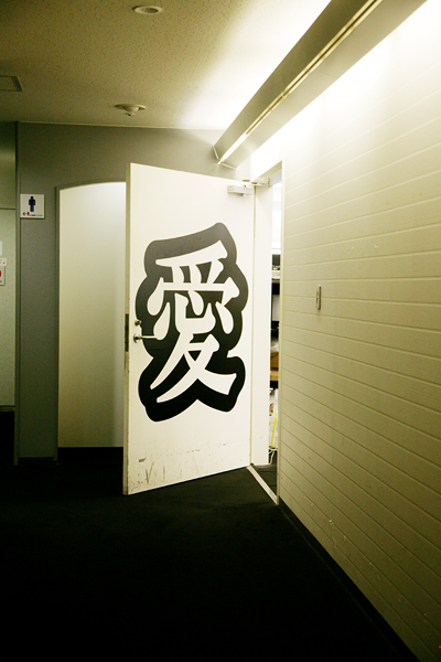 ビルのフロアと執務室をつなぐトビラには大きく「愛」。「大事なスタッフや、大事な情報が詰まっている場所だから愛情をもって開け閉めを心がけよう」というメッセージ。愛です、愛