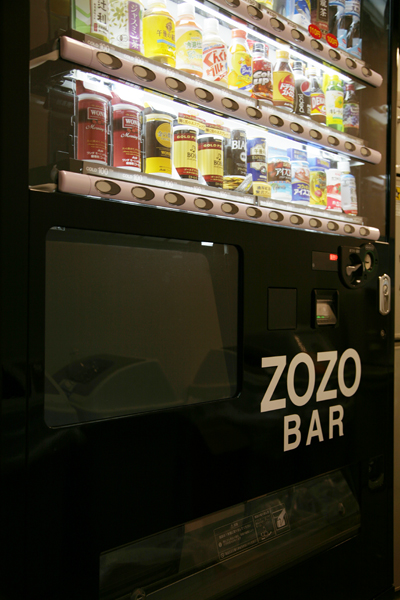 コーポレートカラーであるブラックで包まれた自動販売機「ZOZOBAR」。社内でデザインされた