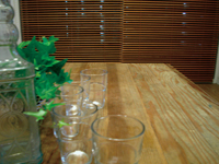 【1】グラスを奥に並べたいが、テーブルの長さが足りないために、グラスを置けない【1-1】。そこで「Vanishing Point」の機能を使って、3Dの奥行きを設定しよう。フィルタメニュー→"Vanishing Point"→[画作成ツール]で板の目に沿ってグリッドをつくる【1-2】。
