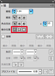 線をはめるピクセルをきっちり管理したいときは、[線の位置]が便利です。ただし、[線幅]が整数でなかったり、水平/垂直線でなかったりすると、ぼやけたり位置がずれたりは避けられないです。あくまでオブジェクトが長方形の場合に便利な方法です。 途中で切り替えるのではなく、最初からピクセルプレビューモードで作業していると、[線]に何らかの色が設定されている場合、アンカーポイントがピクセルの中央になるように自動的に調整してくれることがあるようです(設定をいじくりまわしているとならないこともあり)。この場合、[内側]とか[外側]にすると位置がずれることになります。 線の位置については |