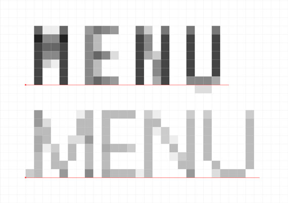 ![]() ![]() 表示:ピクセルプレビュー アンチエイリアス:オン ![]() 表示:ピクセルプレビュー アンチエイリアス:オフ |