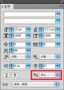 ![]() 表示:ピクセルプレビュー アンチエイリアス:オン 文字パネルのアンチエイリアス:オフ |