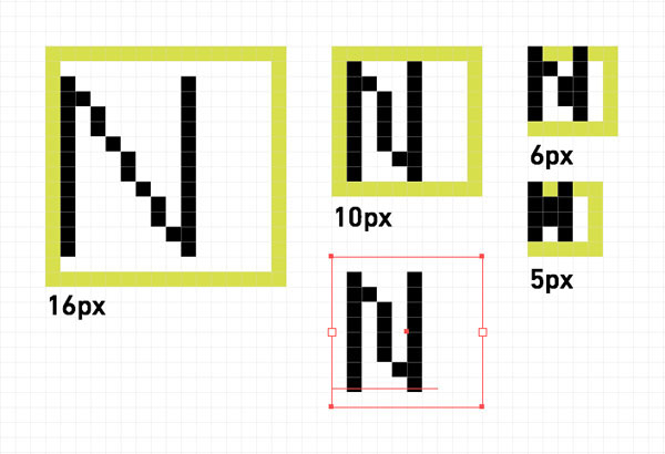 フォントサイズ=使用ピクセル数ではないうえ、フォントサイズによって、余白のとりかたが変わります。その差分は、一辺をフォントサイズと同じ値に設定したテキストエリアに文字を入力してみると、わかります。 ちなみに「N」の場合、[フォントサイズ:5px]では、「H」とほとんど区別がつかない状態になってますね。 アンチエイリアスをオフにした状態で使うことは、ビットマップをテーマにしたサイトでもない限り、あまりないと思いますが(アンチエイリアスかかってない文字を見かけることはほとんどなくなりました)、極小サイズの文字の可読性を優先させたいときなどは、いまだに便利です。 表示:ピクセルプレビュー アンチエイリアス:オン 文字パネルのアンチエイリアス:オフ |