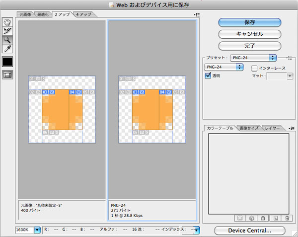 表示:ピクセルプレビュー アンチエイリアス:オフ |