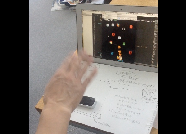 発表した作品、手を振ってゲームを操作するもの(クリックで拡大)
