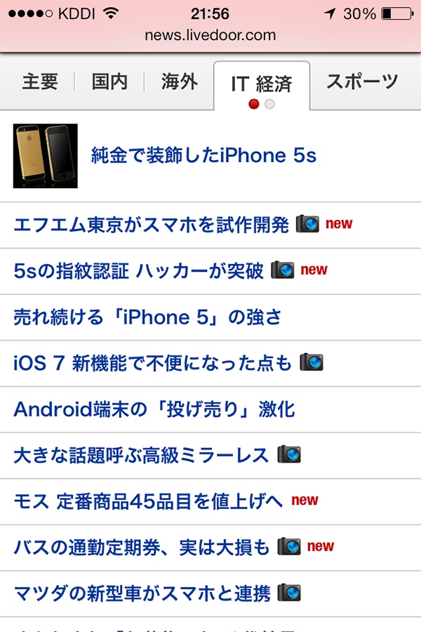 Livedoorニュースのスマートフォン向けサイト。きっとユーザーは「ざっと」見渡し、読みたい記事をピックアップするだろう(クリックで拡大)