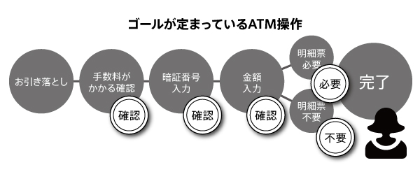 銀行ATMの場合は、商用Webサイトと異なり「振込」や「引き落とし」など、ユーザーの目的が明確になっているほか、商品のタイトルや写真説明なども必要ない。つまり、ボタンが目立ってわかりやすいほうが目的を達成しやすいわけだ。ユーザーはそこで離脱するわけにはいかず、むしろ目的を達成させなければならない状況にあると考えられる。商用Webサイトの状況とはちょっと違うようだ。