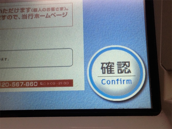 銀行ATMのボタンは立体的で、押すと凹む演出がなされる。これでいいのではないだろうか(クリックで拡大)