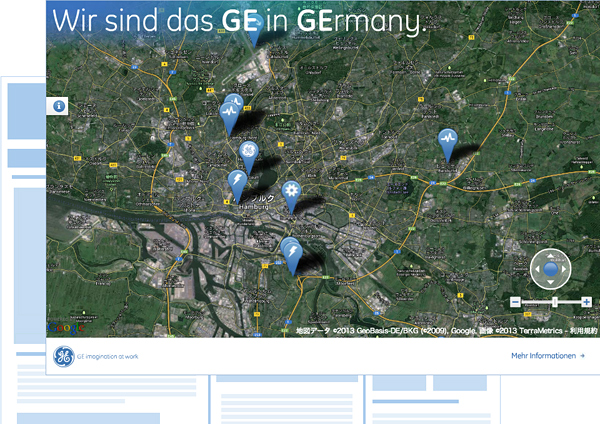 Webページ上で展開されるリッチメディア広告。バナーにロールオーバーすると領域が拡大。拡大したコンテンツ内にはGoogleマップが埋め込んであり、自由に操作できる。広告内で別のGoogleのサービスを活用できるのも、リッチメディア広告ならではの特徴だ。