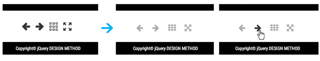 <link href="http://netdna.bootstrapcdn.com/font-awesome/ 4.0.1/css/font-awesome.css" rel="stylesheet"> ・・・省略・・・ <nav class="controls"> <span class="control icon-arrow-left" data-direction="previous"><i class="fa fa-arrow-left"></i></span> <span class="control icon-arrow-right" data-direction="next"><i class="fa fa-arrow-right"></i></span> <span class="grid icon-grid"><i class="fa fa-th"></i></span> <span class="fs-toggle icon-fullscreen"><i class="fa fa-fullscreen"></i></span> </nav>