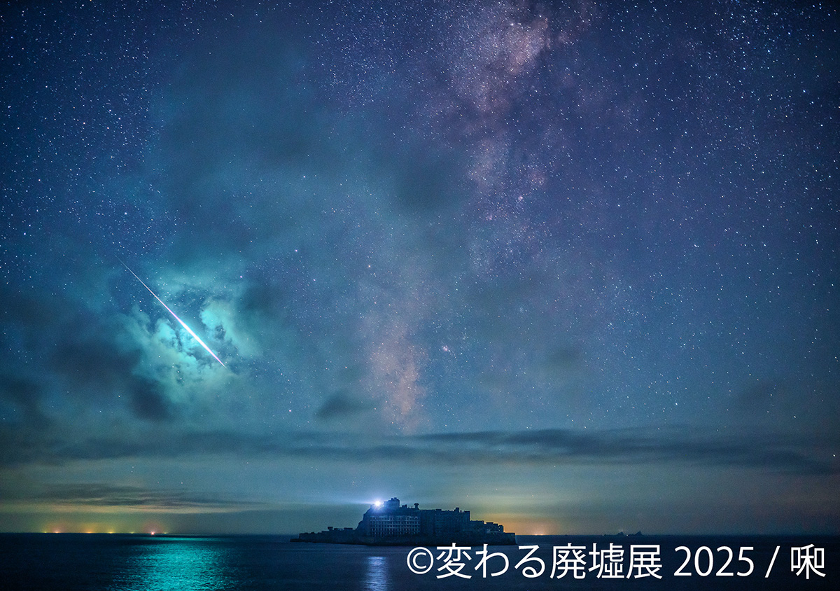 会場では「啝」が手掛けた壮大な映像作品も初公開されます。ベルギーやフランスの歴史的な廃墟、日本全国の有名な廃墟、さらには世界遺産の軍艦島まで、ドローンを駆使して撮影された映像です。数々の廃墟が短編動画の中に凝縮されており、独特な物語を垣間見ることができます。