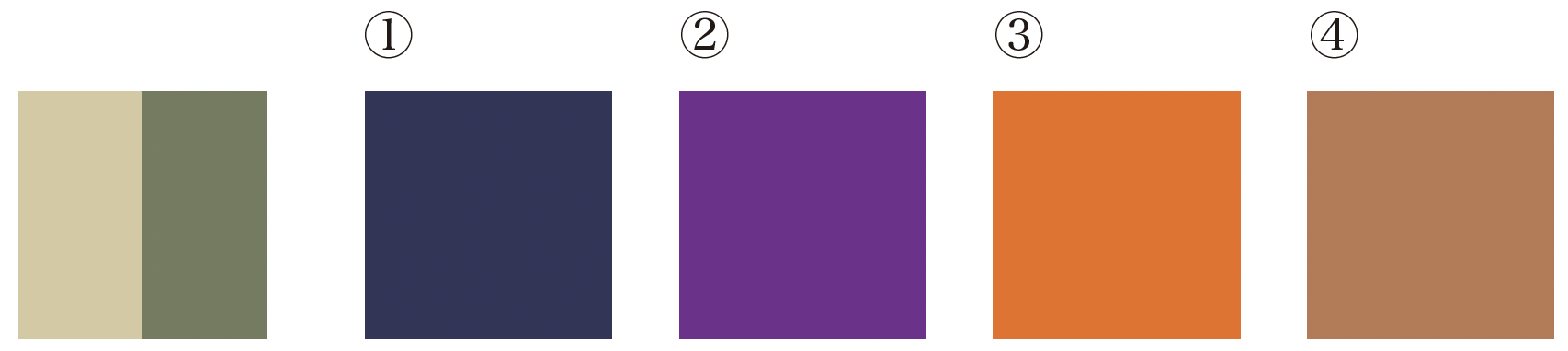 D. 下の2 色と組み合わせて、「ナチュラル」なイメージの配色になる色は?