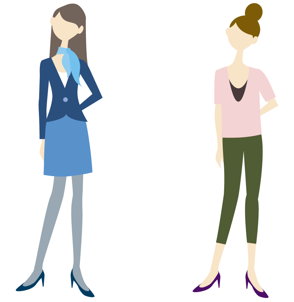 スタイリング:ジャケットとパンツなどの組み合わせ、ヘアーメイク、アクセサリーなどとの全体のコーディネート