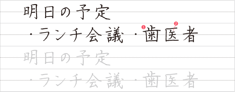 やるべきことをリスト化しておくと、行動に優先順位をつけやすくなったり、忘れがちな予定を漏れなく管理することができますよ。❶ 上部3分の1で「止」を書き、「米」以降は残りのスペースをたっぷり使って大きめに。