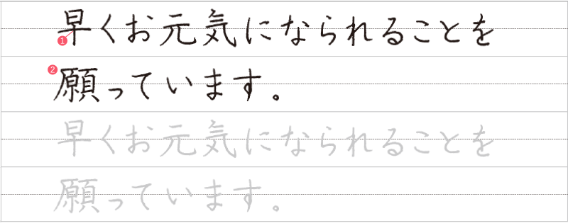 入院中の友人へ、励ましの言葉を送りましょう。心から回復を願う温かいメッセージを送って、少しでも元気を届けたいですね。❶「十」の2辺は上の方で交わり、縦画を下に長く突き出す形に。
