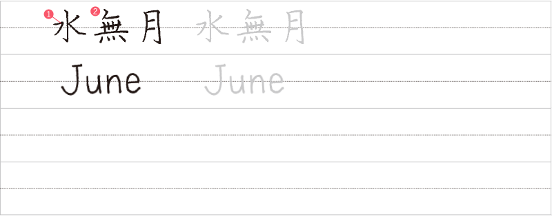 6月になりました。陰暦6月を表す和風月名と、英語表記を練習しましょう。予定表をおしゃれに飾りたいときなどに活用できます。
