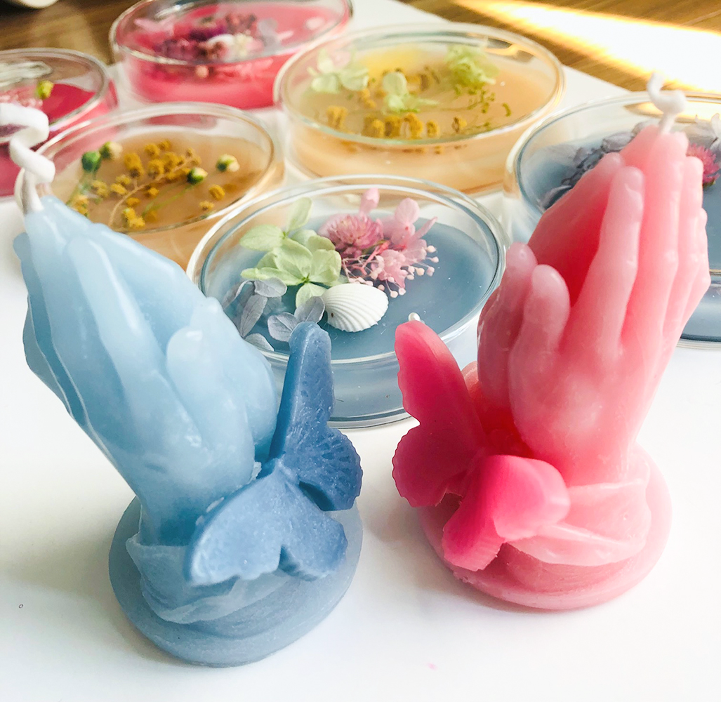 また、化粧品からつくられた粉状の色材「SminkArt ときめくペイント」は、レジンやアロマワックスだけでなく、石膏や粘土などに混ぜ込んで使うこともできます。絵具やジェルネイルの雑貨用色材としては多くの方に使っていただいていますが、立体造形にも活用できることがもっと認知されるとよいなと思っています。