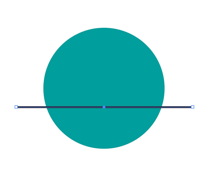続いて、楕円形ツールでアートボード上を1回クリックして楕円形ダイアログを表示し、[幅:150px]、[高さ:150px]で適用して正円を描いたあと(図5)、直線ツールでshiftキーを押しながら横方向にドラッグして円の直径より長い線を引く(図6)。