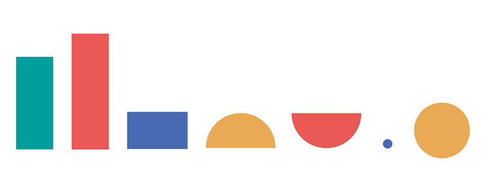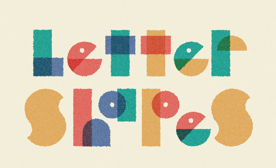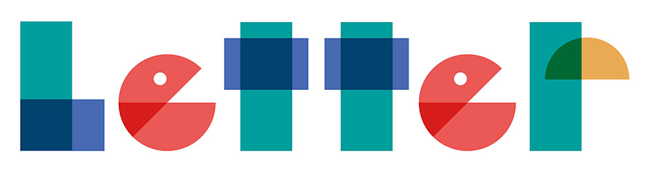 Illustratorだけで、図形を組み合わせて表現した文字を作る方法をご紹介。リソグラフ印刷をイメージした作例で、長方形・円・半円を組み合わせ、乗算効果で色の重なりを出しています。レトロでかわいい色使いや、インクがかすれたような風合いもポイント。
