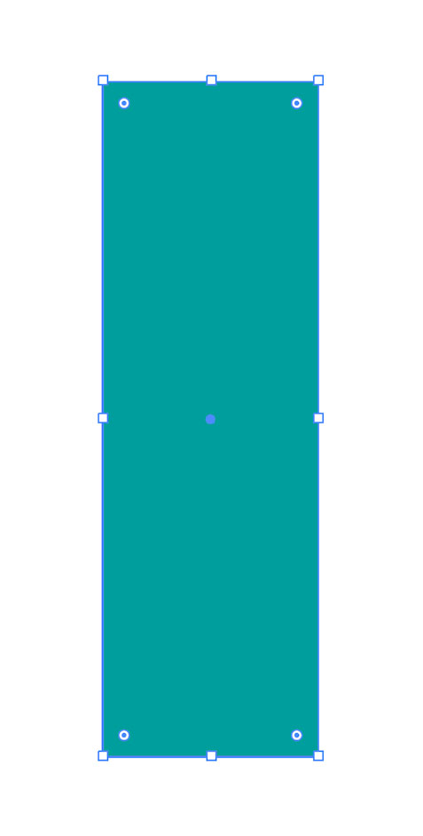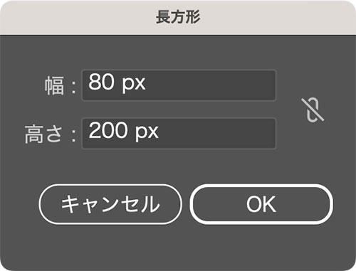 文字のベースとなる図形を描いていく。まずは新規ドキュメントを[幅:1200px]、[高さ:730px]、[カラーモード:RGBカラー]で作成したら、[塗り]を任意の色(ここでは16進数カラーコード[#009e9d]の緑)、[線]を[なし]に設定。長方形ツールでアートボード上を1回クリックして長方形ダイアログを表示し、[幅:80px]、[高さ:200px]で適用して縦長の長方形を描画する(図1)(図2)。