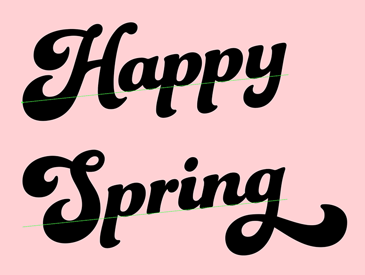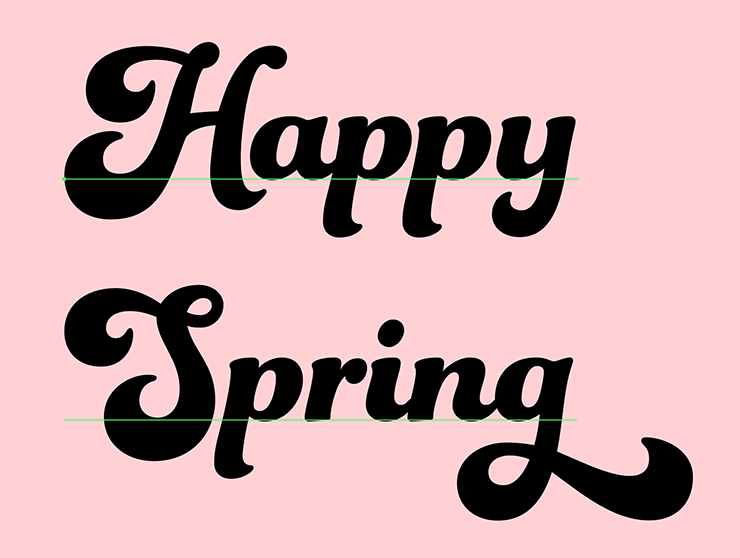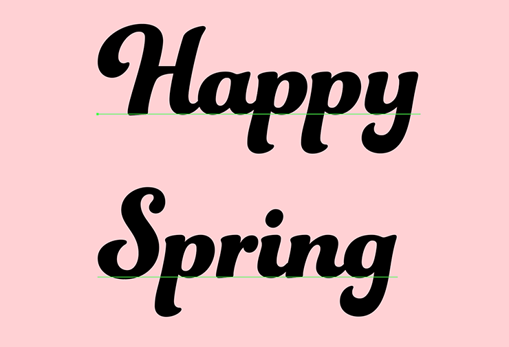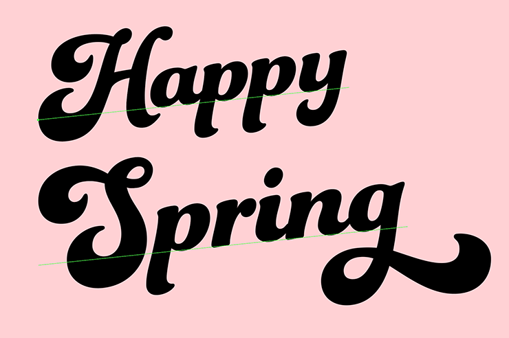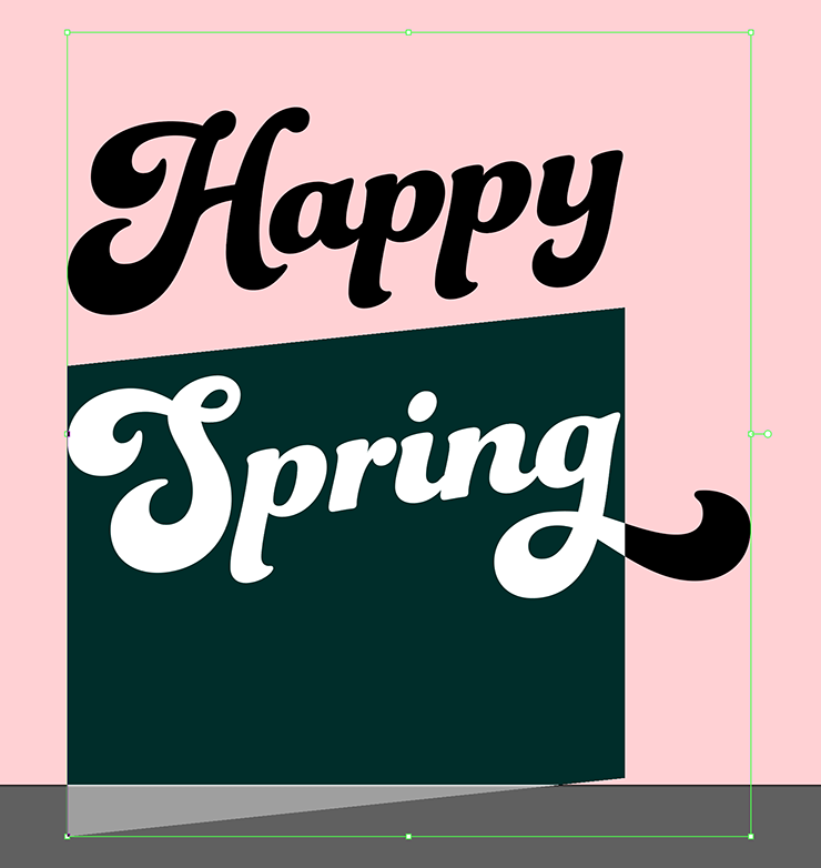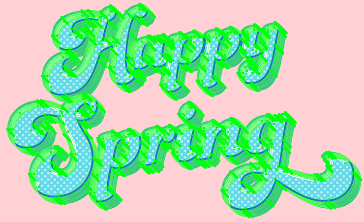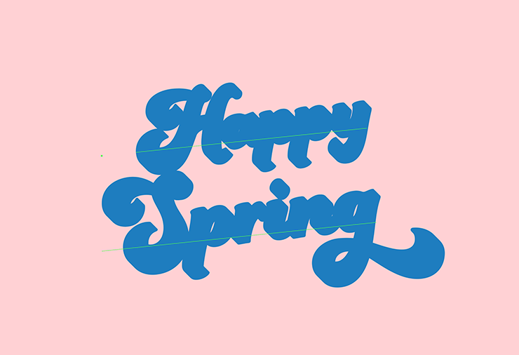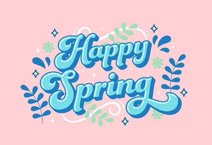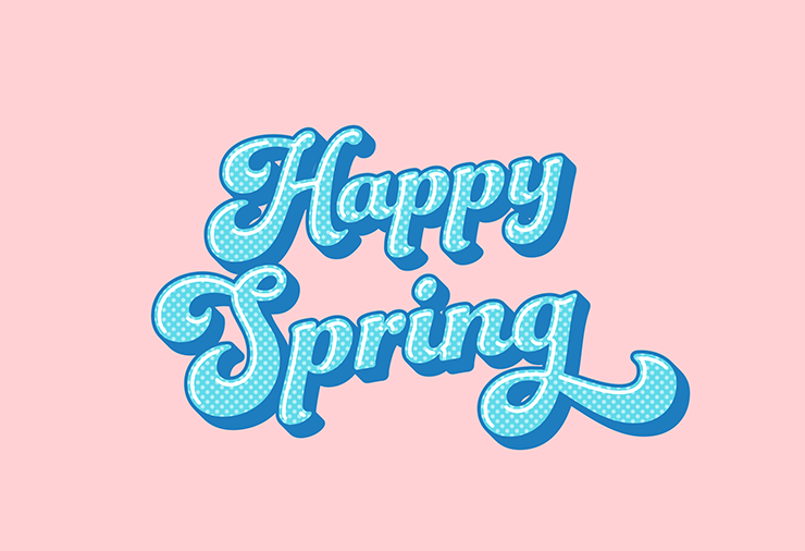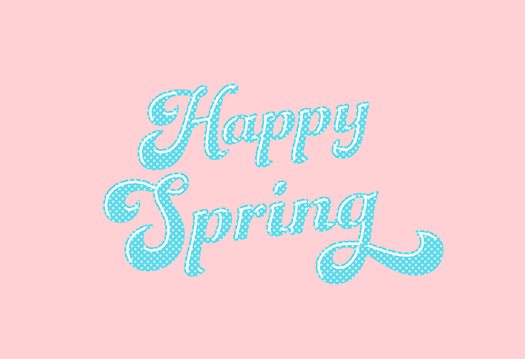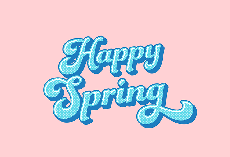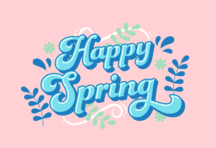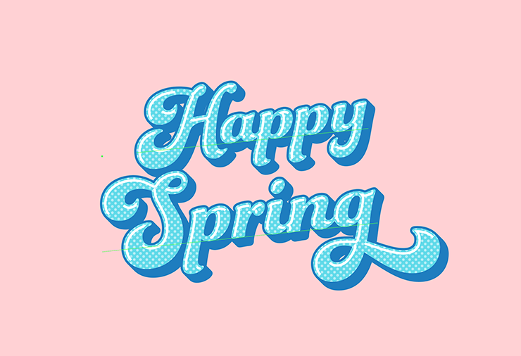 次に、レイヤーパネルで「文字」レイヤーを選択したら、文字ツールで「Happy Spring」と入力し、文字パネルや段落パネルでイメージに合った書体やフォントサイズなどに変更する。ここでは[フォントファミリ:Funkydori]、[フォントスタイル:Regular]に設定し、全体のバランスを見ながらフォントサイズなどを調整した(図7)。