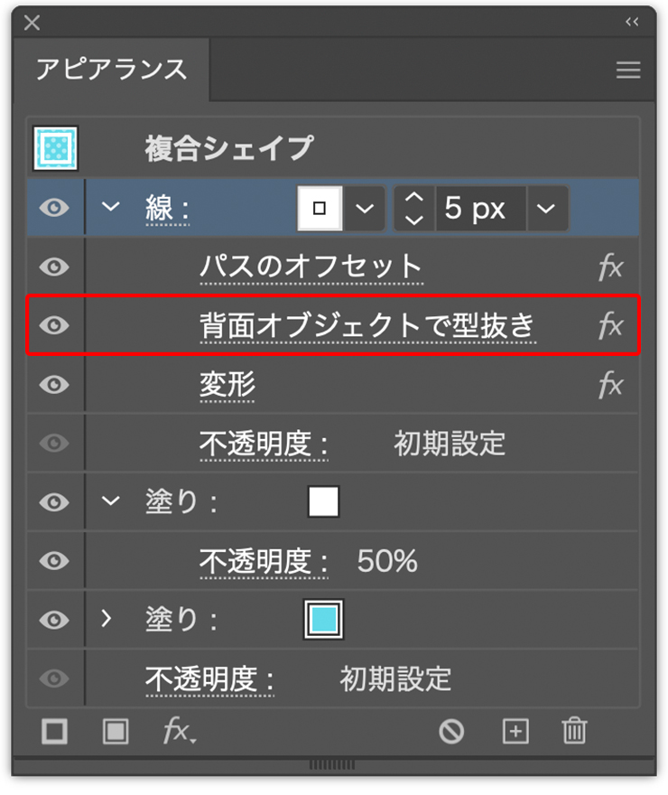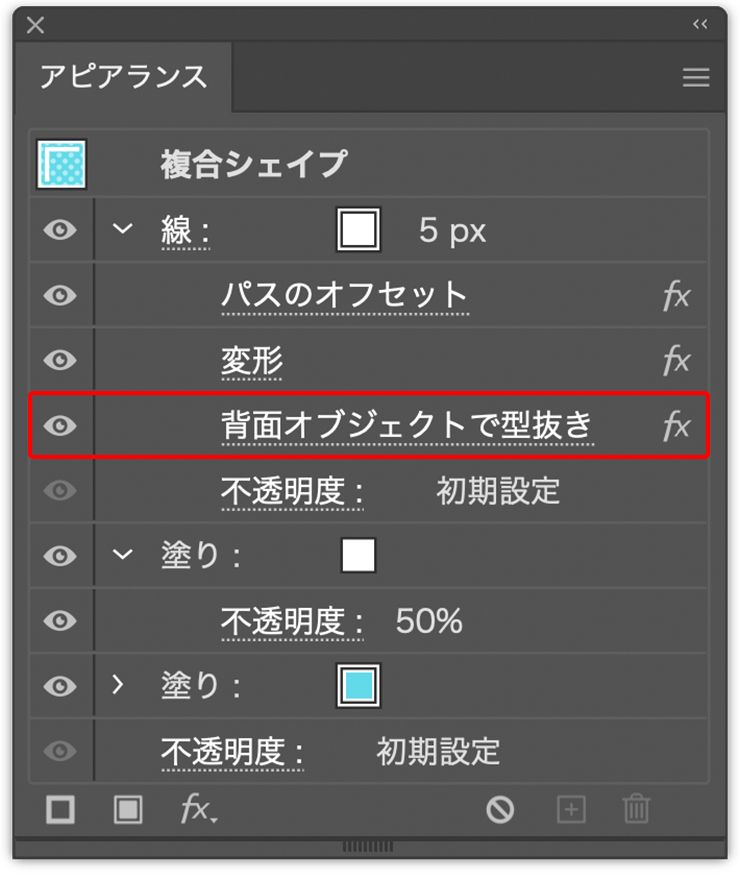 *ドラッグがうまくできない場合は[背面オブジェクトで型抜き]の右側部分をドラッグすると良い