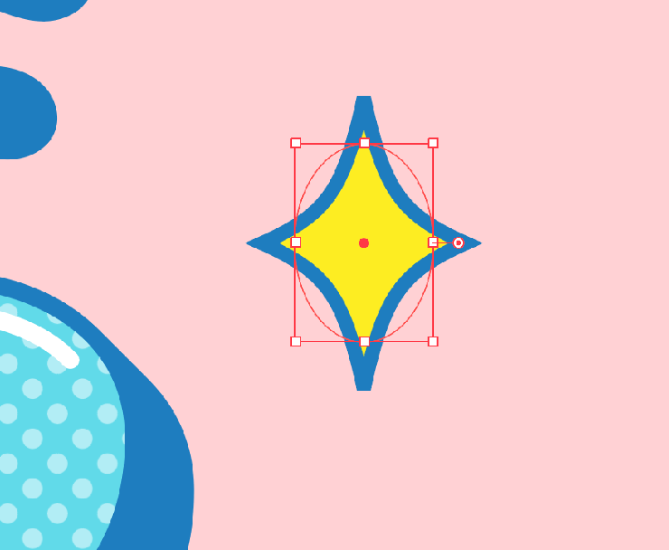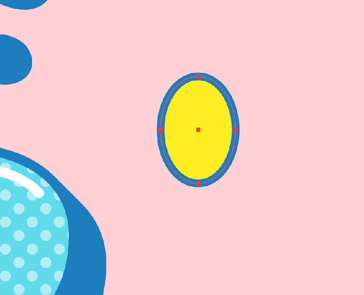 また、楕円形ツールで楕円を描いて[塗り]を黄色(ここでは、16進数カラーコード[#fcee21])、[線]を紺色に変更し(図57)、効果メニュー→“パスの変形”→“パンク・膨張...”を[収縮:ー47%]で適用して作成したキラキラ模様や(図58)、小さな円、十字などを散りばめて完成とした(図59)。
