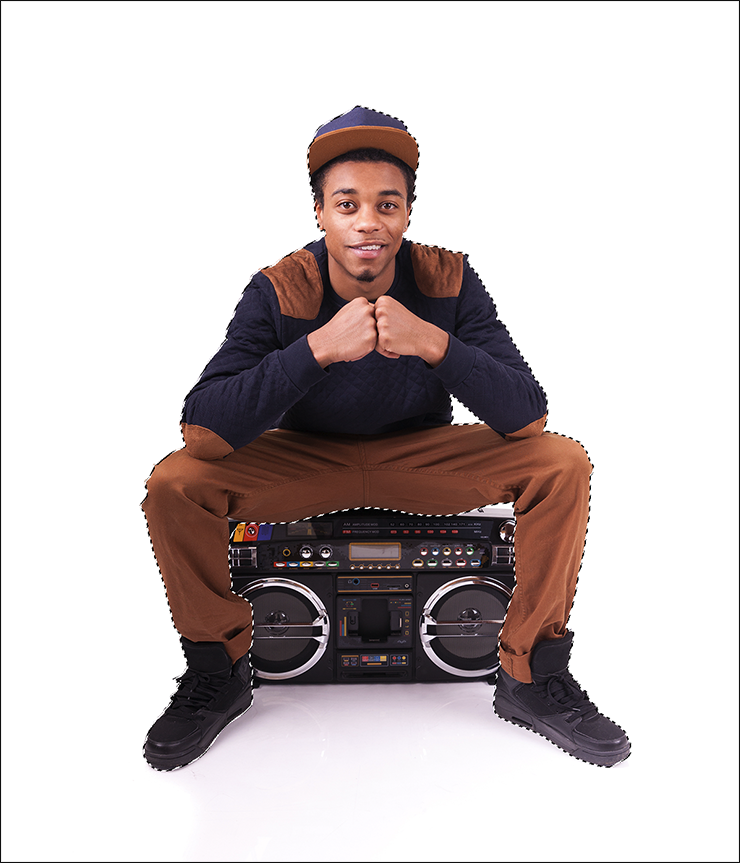 レイヤーパネルで元写真のレイヤーを選択したら、選択範囲メニュー→“被写体を選択”を実行して被写体の輪郭に沿って選択範囲を作成(図2)。続いてコピー&ペーストして、被写体の部分のみ新規レイヤーに複製する(図3)。