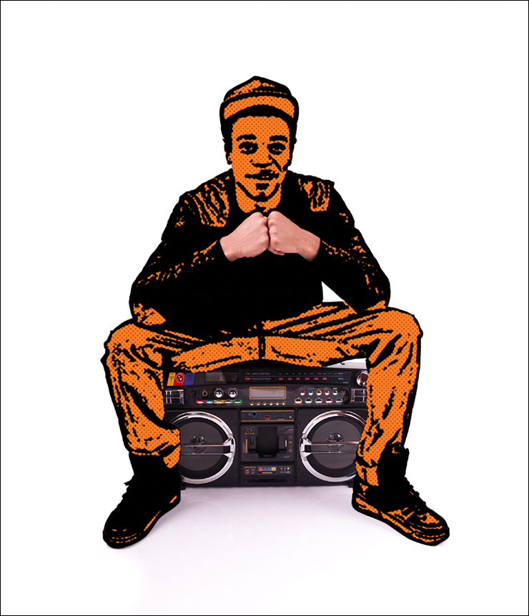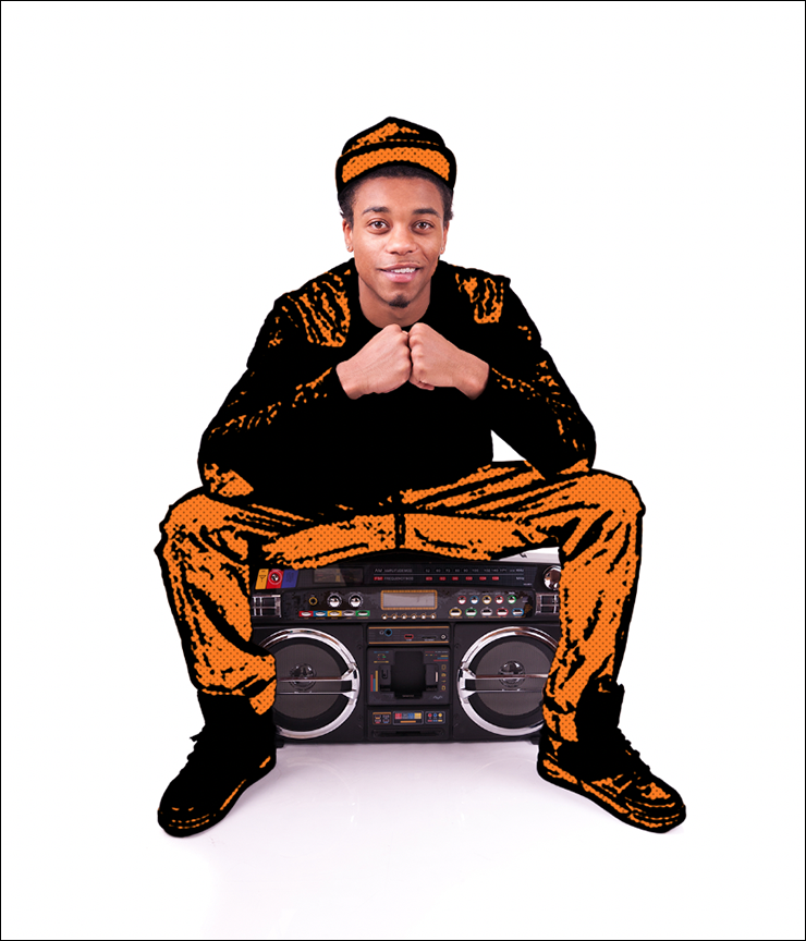 画像をイラスト風に加工していく。レイヤーパネルで被写体部分のレイヤーを選択し、[描画色]を黒、[背景色]をオレンジ(ここでは、[R:255、G:123、B:0])に設定(図4)。