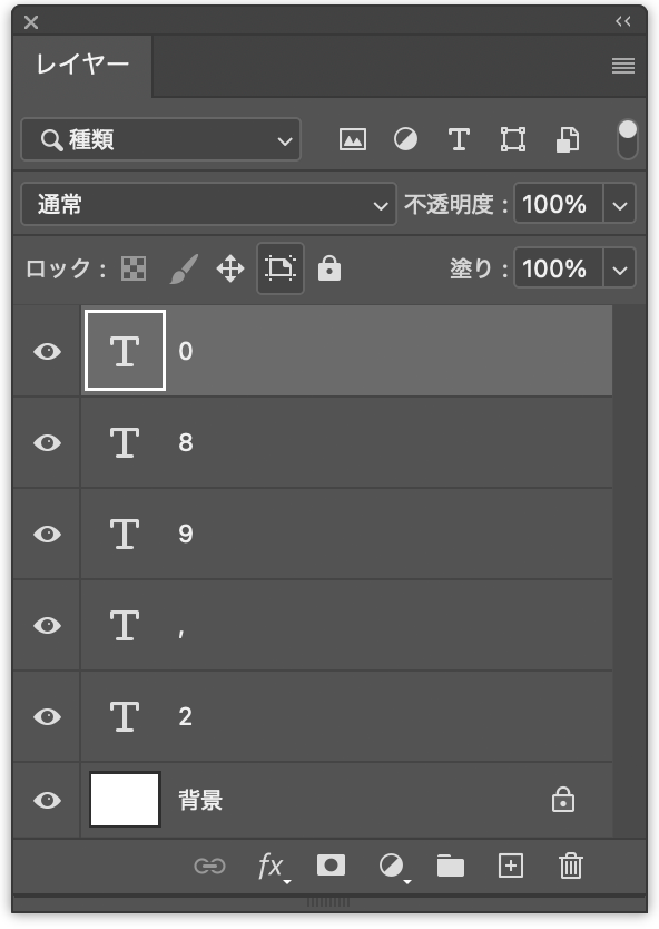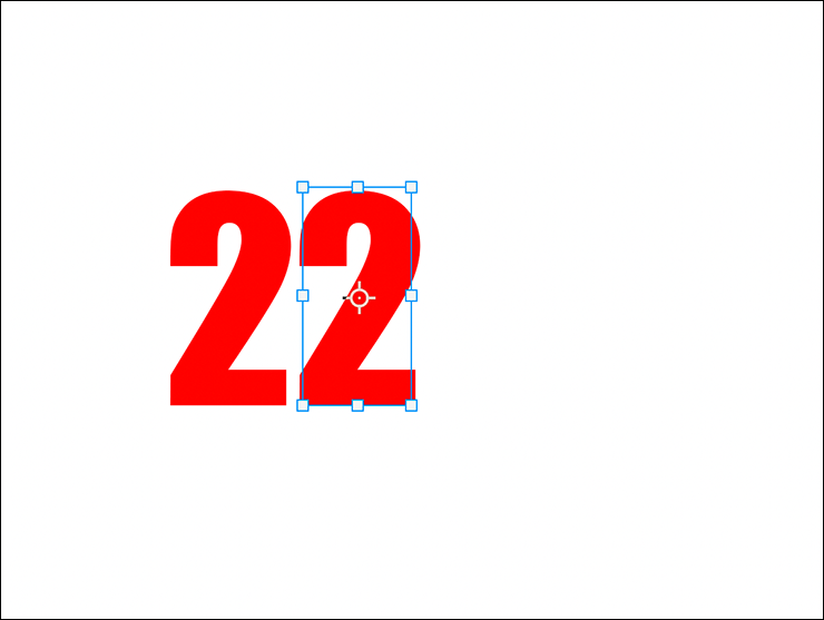 最初の一文字(ここでは、数字の「2」)を配置したあと(図1)、移動ツールでその文字にマウスポインターを合わせ、shift+optionキー(Macの場合。WindowsではShift+Altキー)を押しながら右にドラッグして複製する(図2)。