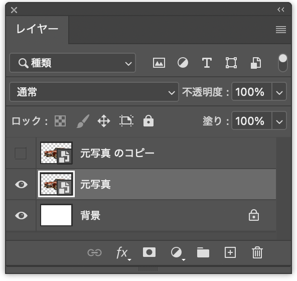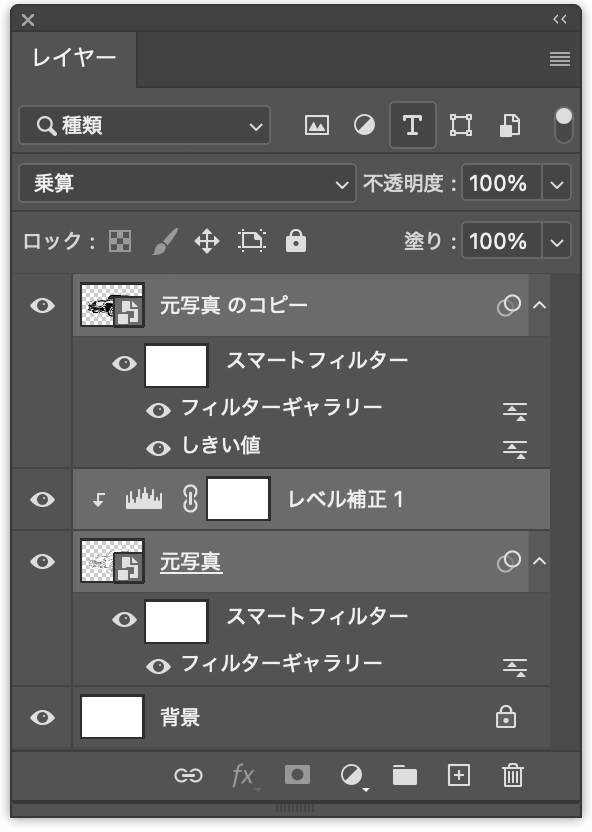 「背景を削除」「移動ツール」「スマートオブジェクト」「コピー」「レベル補正」「2階調化」「描画モード」「ハーフトーンパターン」「カラーオーバーレイ」