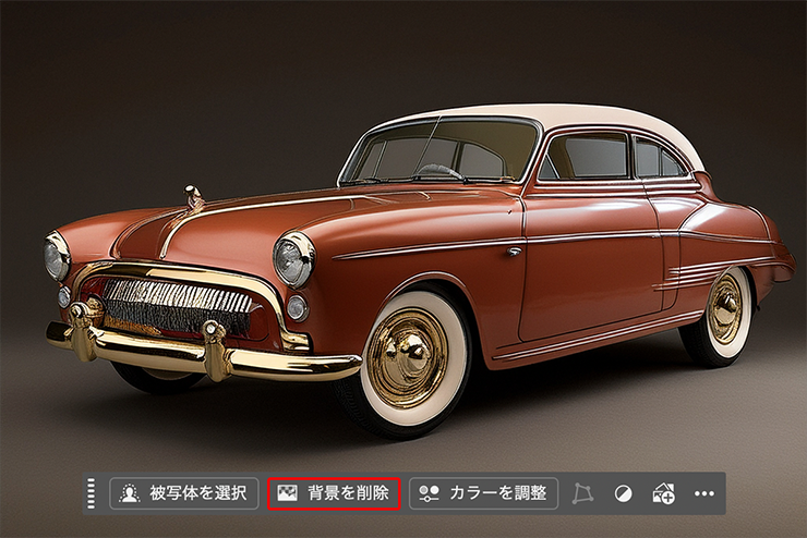 コンテキストタスクバー(表示されていない場合は、ウィンドウメニュー→“コンテキストタスクバー”にチェックを入れて表示させる)の[背景を削除]をクリックして被写体の背景を消したら(図2)、移動ツールを選び、バウンディングボックスのハンドルをドラッグしてサイズを調整する(図3)。