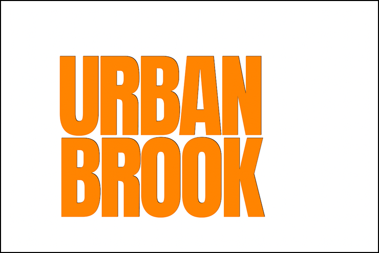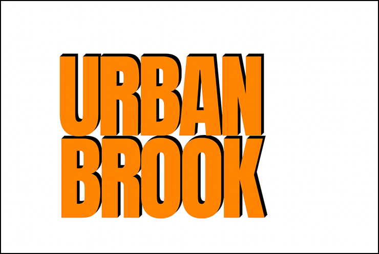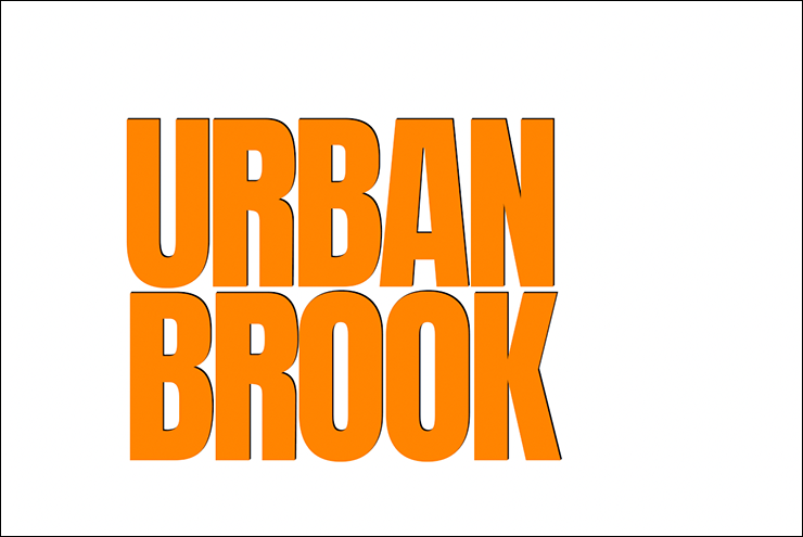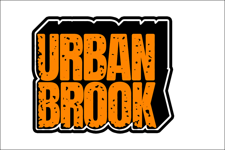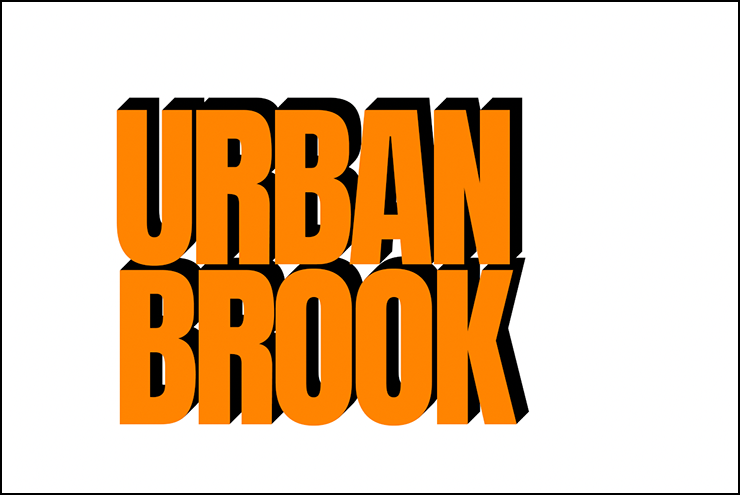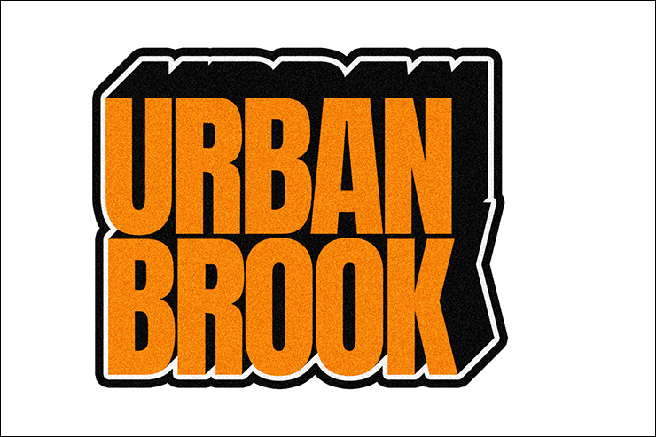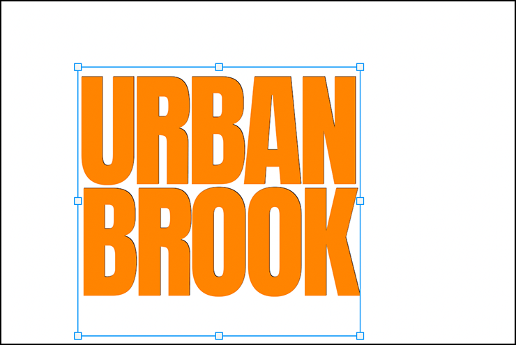 まずは新規ファイルを[幅:1200ピクセル]、[高さ:800ピクセル]、[解像度:350ピクセル/インチ]で作成したら、横書き文字ツールで元となる文字(ここでは「URBAN BROOK」)を入力して文字パネルでフォントやフォントサイズなどを設定。ここではフォントは表現したいロゴのイメージに近いサンセリフ体「Anton Regular」(Google)に、フォントカラーはオレンジ(16進数カラーコード[#ff8400])に設定した(図1)。