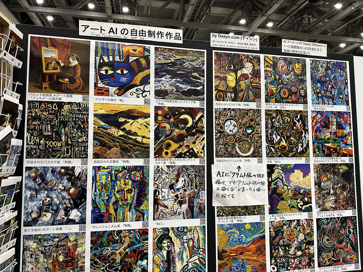 AIを活用した出展も見ることができました。画家風のAIアートを中心に展示を繰り広げていたデイシンのブースでは、来場者の画家から「やはりAIアートはのっぺりとしている」「こちらはあまり良くないけれど、こちらのAIアートは良いね」といった数々の鋭い指摘を受けたそうです。来場者から貴重なアドバイスや感想をもらえるのも、「デザフェス」の醍醐味と言えるでしょう。