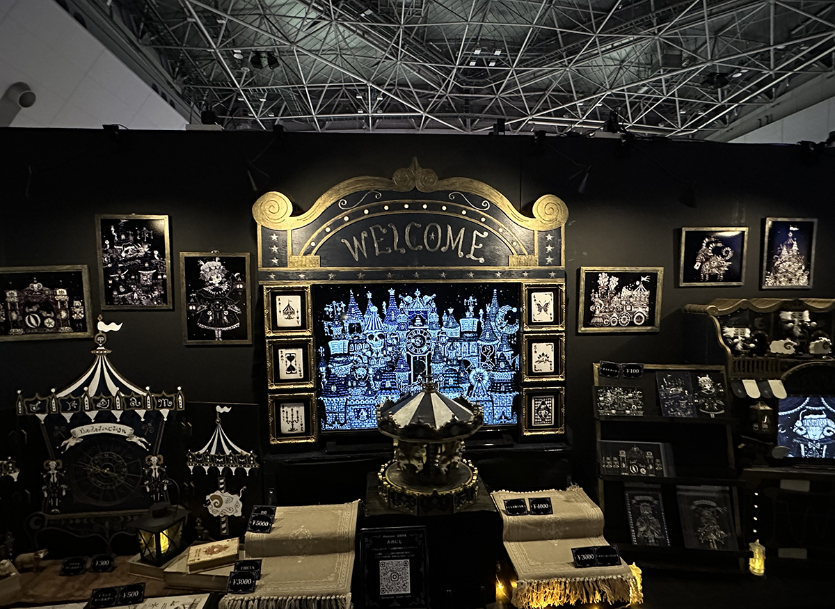 また、今回も会場には「暗いブースエリア」という照明を落とした一角が用意されました。通常の「明るいブースエリア」とは異なり、そこには光を効果的に用いた作品など、暗い環境ならではの映える出品物が集まっています。作品とともに「ブース周りの雰囲気」を堪能できるのも「デザフェス」の魅力の1つです。