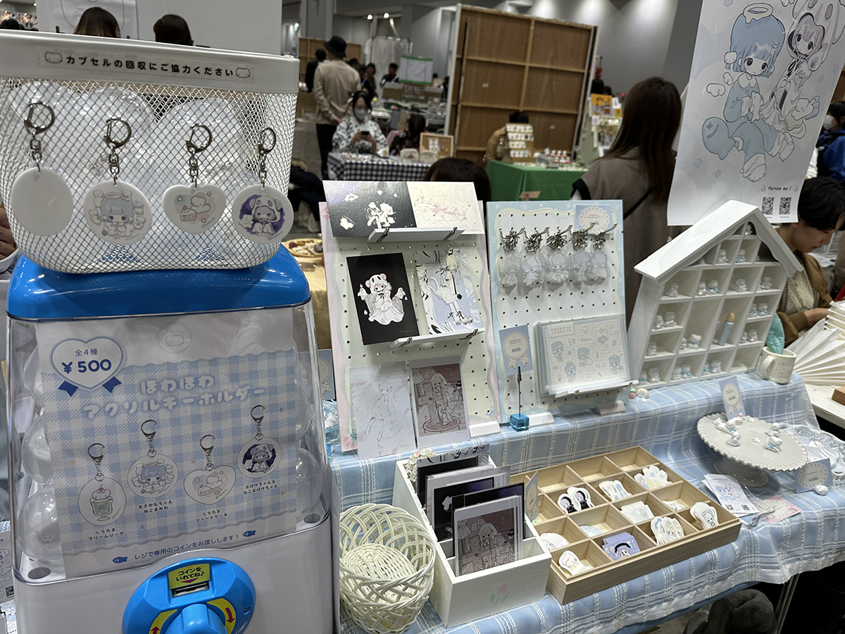 カプセルトイは今や子どもだけでなく大人にも人気を博しています。また、近年のイベントでは「参加型・体感型」という言葉がキーワードとなることも多いです。アクリルキーホルダーやアクセサリーなどの出品物をカプセル自販機で販売する方式は、まさに来場者が「参加」して楽しめるスタイルだなと感じました。