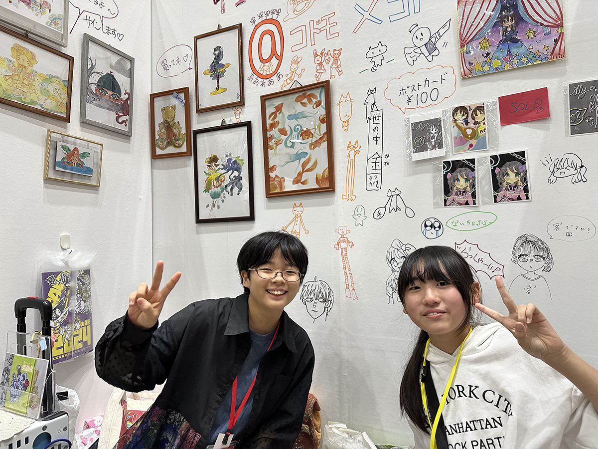 もともとは小学5年生のS極さんの “推し” の絵師が出展していたことから「デザフェス」にも興味を持ち、「私たちも出ようよ!」と参加を決めたそうです。事前の準備では「どのような名前にしたら注目してもらえるか」といった工夫まで楽しみました。当日は「2人でずっと立っているのは疲れるから、じゃんけんで負けたほうが立って、誰かが立ち止まってくれたら交代しよう」などの微笑ましいやり取りもあったようです。