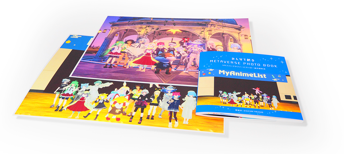 「フォトブック」部門の第1位は、ヤマゼンコミュニケイションズ株式会社の「メタバース時代の新たなフォトブック市場開拓 - VRフォトグラファーとアバター達の撮影会 – 」。VRカメラでアバターたちを撮影したフォトブックアルバムとポスターです。VR空間のRGB色域が限りなく再現されています。