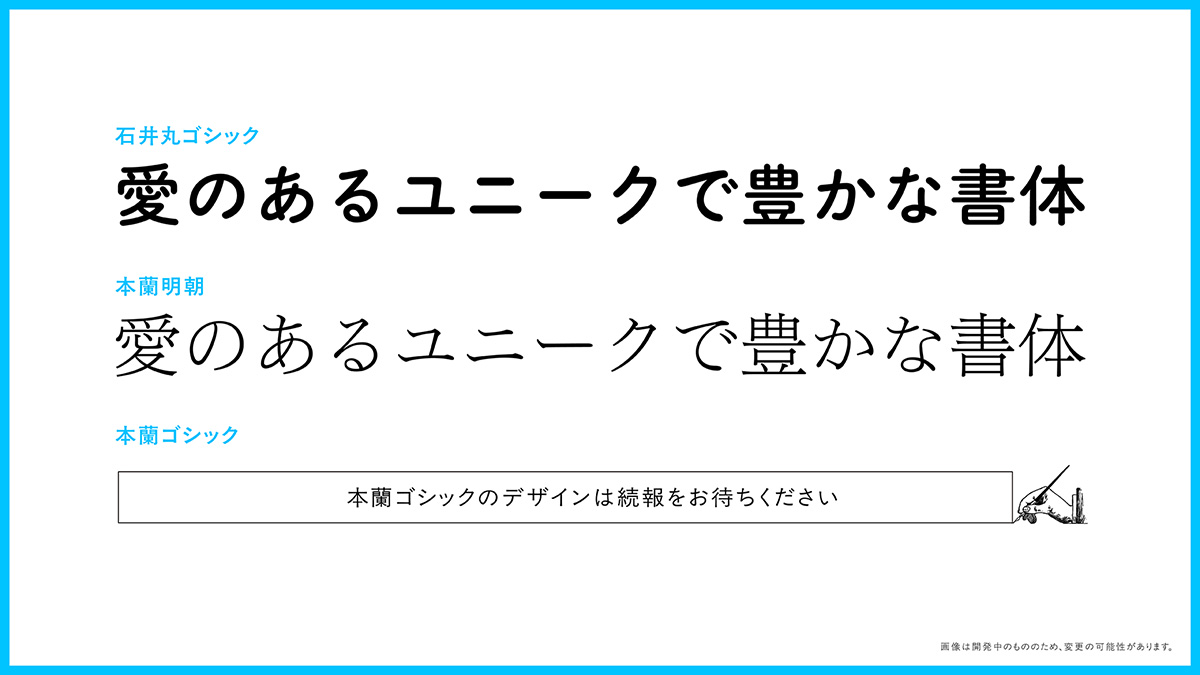 「本蘭明朝」は現代の表示環境を考慮し、コントラストの再検討が行われているそうです。「本蘭ゴシック」はかな文字のリデザインが進められており、その改刻にはオリジナルの「本蘭ゴシック」も開発した写研のデザイナーが自ら関わっています。