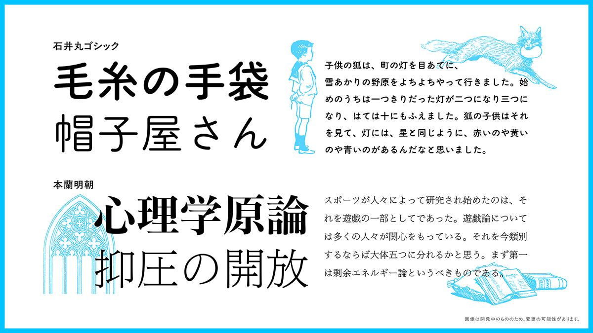 今回、2026年以降のリリース予定であることが明らかにされたのは「石井丸ゴシック」「本蘭明朝」「本蘭ゴシック」です。「石井丸ゴシック」は、従来の3ウエイトから5ウエイトへとファミリー展開が拡張されます。