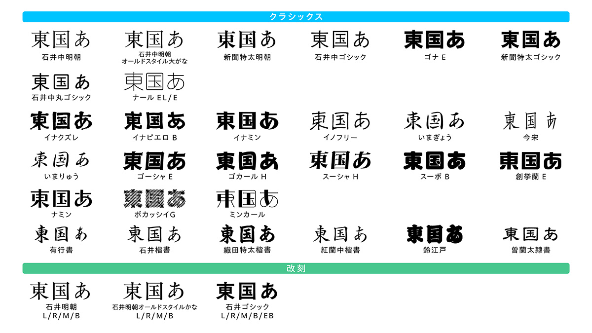 写植時代のスタンダードな書体として多くの印刷物で用いられていた写研書体は、DTPが普及して以降、多くのデザイナーからOpenTypeフォント化を切望されてきました。その願いがついに実現し、本プロジェクトから2024年10月に「石井明朝」と「石井ゴシック」が改刻フォントの第1弾としてリリースされています。
