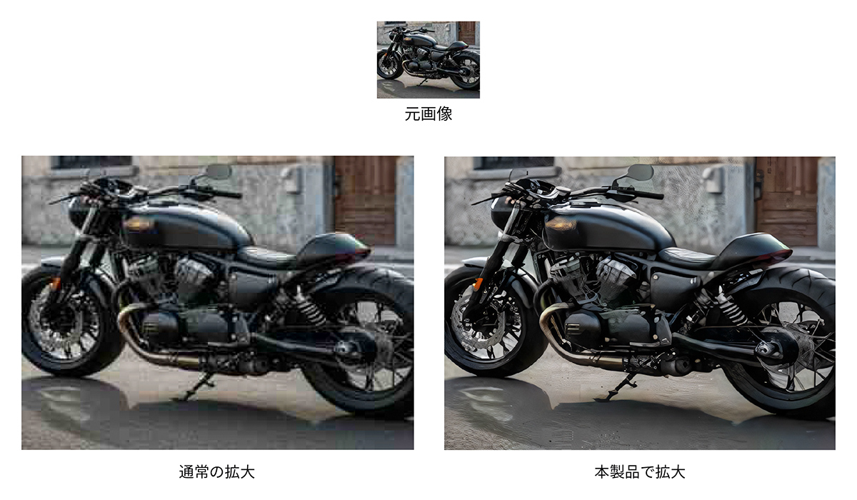 また、「画像の拡大」機能では、元画像を高解像度でクリアなアートワークとして拡大できます。この「画像の拡大」は、ラフスケッチを洗練されたアートワークに変換する機能と並び、デザインの分野でも特に重宝されそうな機能と言えるでしょう。