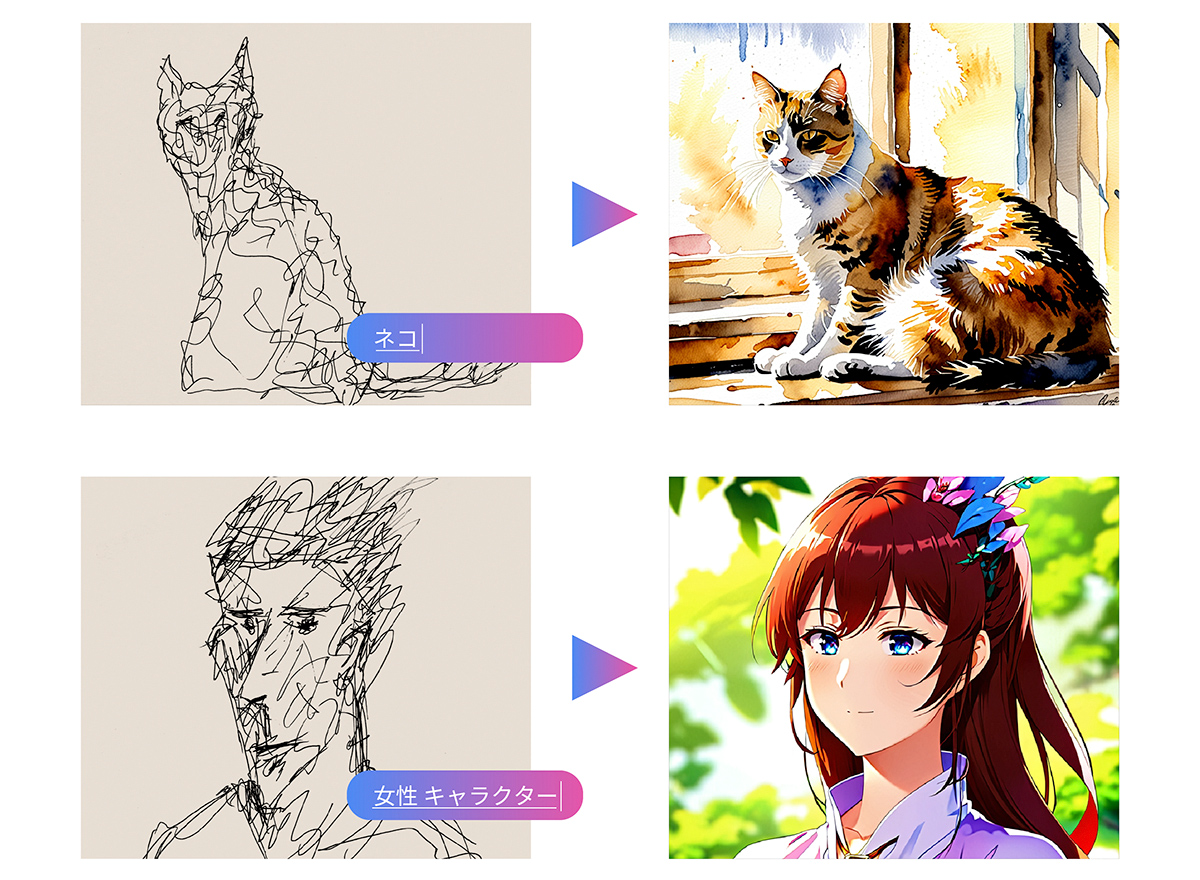 ラフスケッチをもとにした画像生成も可能