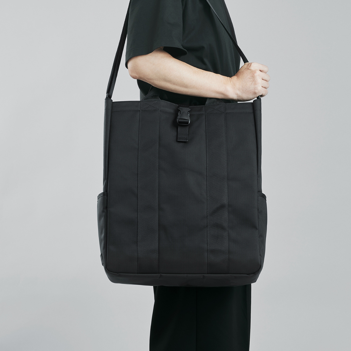それぞれのモデルについて細部を見ていくと、「A3ワークトートバッグ」は印刷物や見本帳を折らずに収納できるバッグです。ボトルや傘の収納に便利なサイドポケットも用意されています。手提げスタイルで使えるほか、バッグの内側に収納できるショルダーストラップを活用して肩掛けスタイルでも使えます。本体サイズは370(幅)×455(高さ)×140(奥行)mmです。