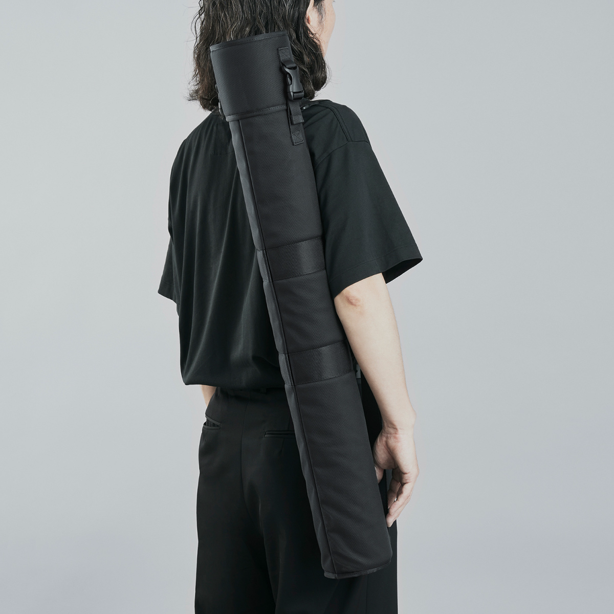 「B1ワークロールバッグ」も、天面に収納できるショルダーストラップを備えています。ポスターや図面などの大判出力物を持ち運ぶのに便利なモデルです。中の芯材には、インクなどで汚れても交換しやすいように既製のボール素材が採用されました。本体サイズは890(幅)×115(高さ)×115(奥行)mmです。