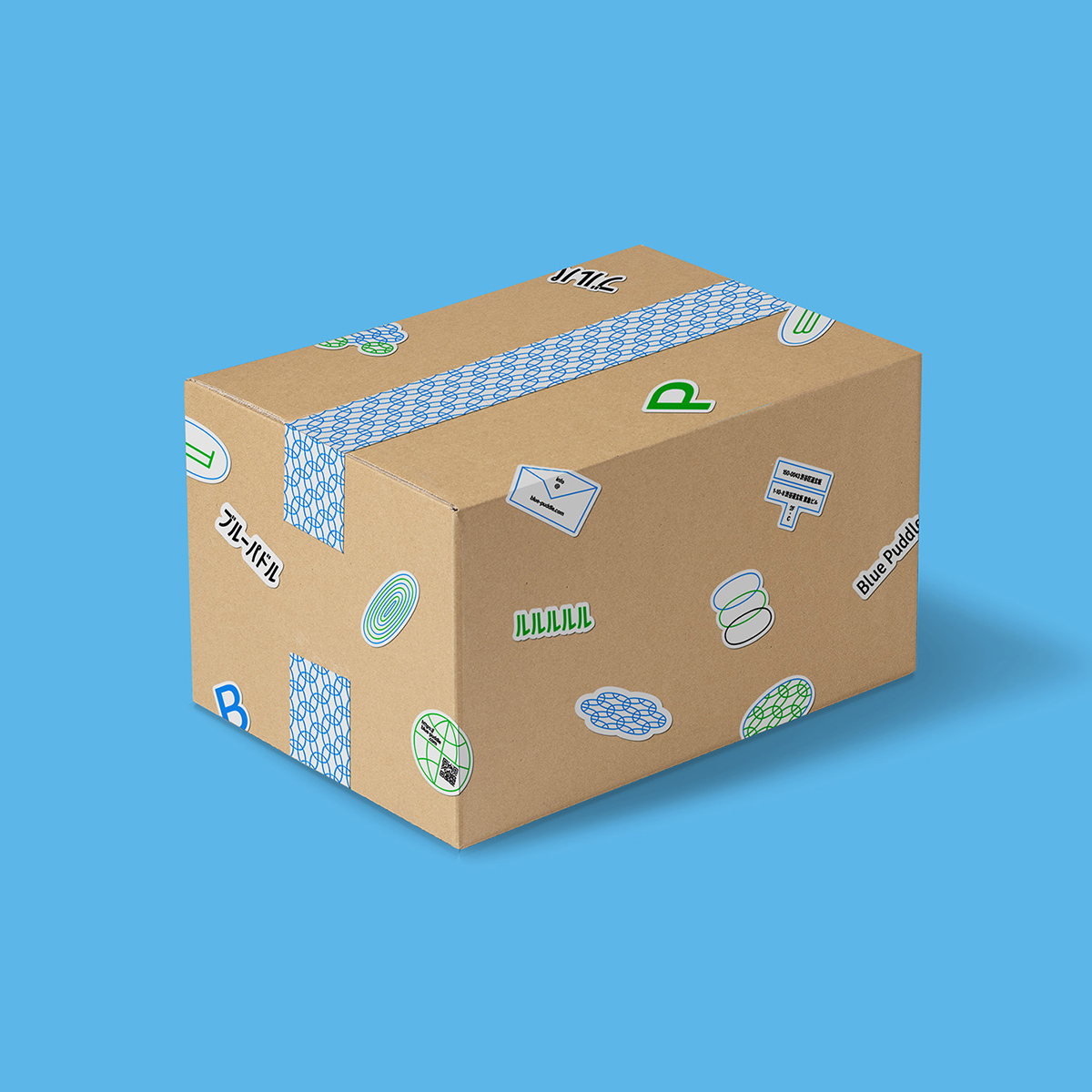 そこで、その矛盾を解決する方法として模索されたのが「もっと従来のCIツールとは違う形がないか?」ということです。そこから辿り着いた発想は「ステッカー」で、無地の封筒や段ボール箱に貼り付けるだけで、どのようなアイテムでも瞬時に「ブルーパドルのCIツール」へと早変わりします。同社ではこれを「SI(ステッカーアイデンティティ)」と命名しました。