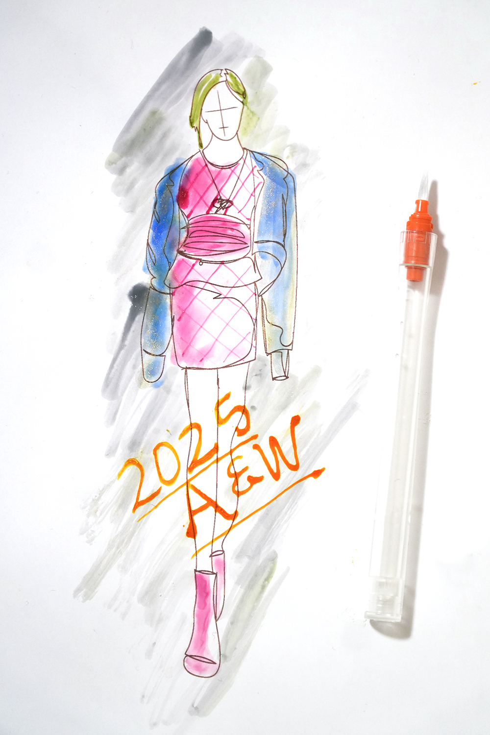 ほかにも「1.0mm幅(カリグラフィタイプ)」と「2.0mm幅(カリグラフィタイプ)」のペン先があります。筆者がカリグラフィが書けていないので(すみません…)書き味が伝わりにくいかもしれませんが、ペンを自分の側に倒すほど太い線になっていきます。ここでは、「2.0mm幅」を使い「2025 A&W」の文字を書いてみました。