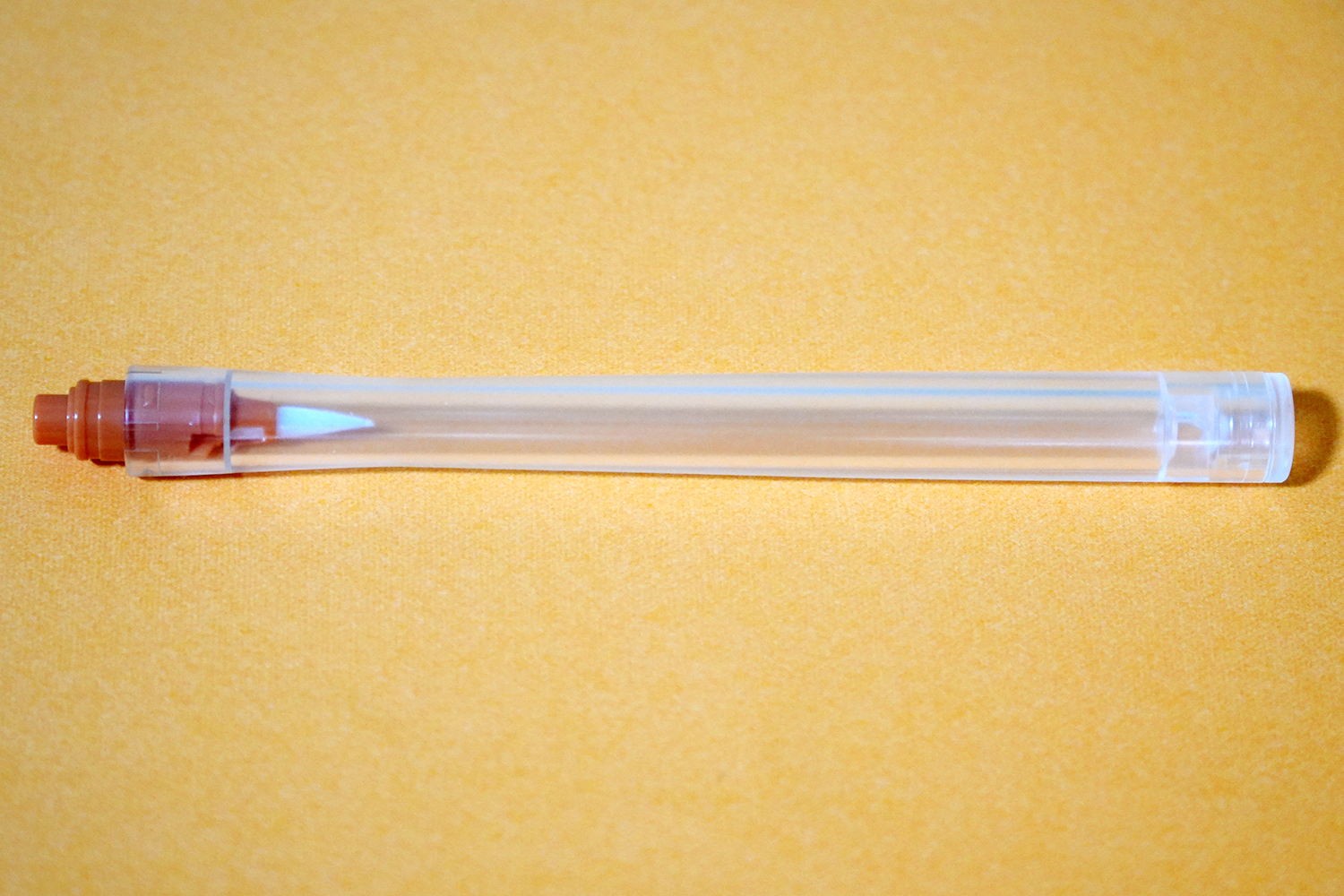洗浄器やお湯でメンテナンスできるとはいっても、使用し終わったらインクが乾く前になるべく早く洗い流し、筆に癖がつかないよう整えておく方がよいでしょう。また、ペン軸の後ろ側はフタがされていて貫通しているわけではありません。そのため、濡れたままペン軸に差しておくと蒸れてしまうので、少し乾かしてからしまった方が衛生的でペン先の品質を保てるのではないかと思います。