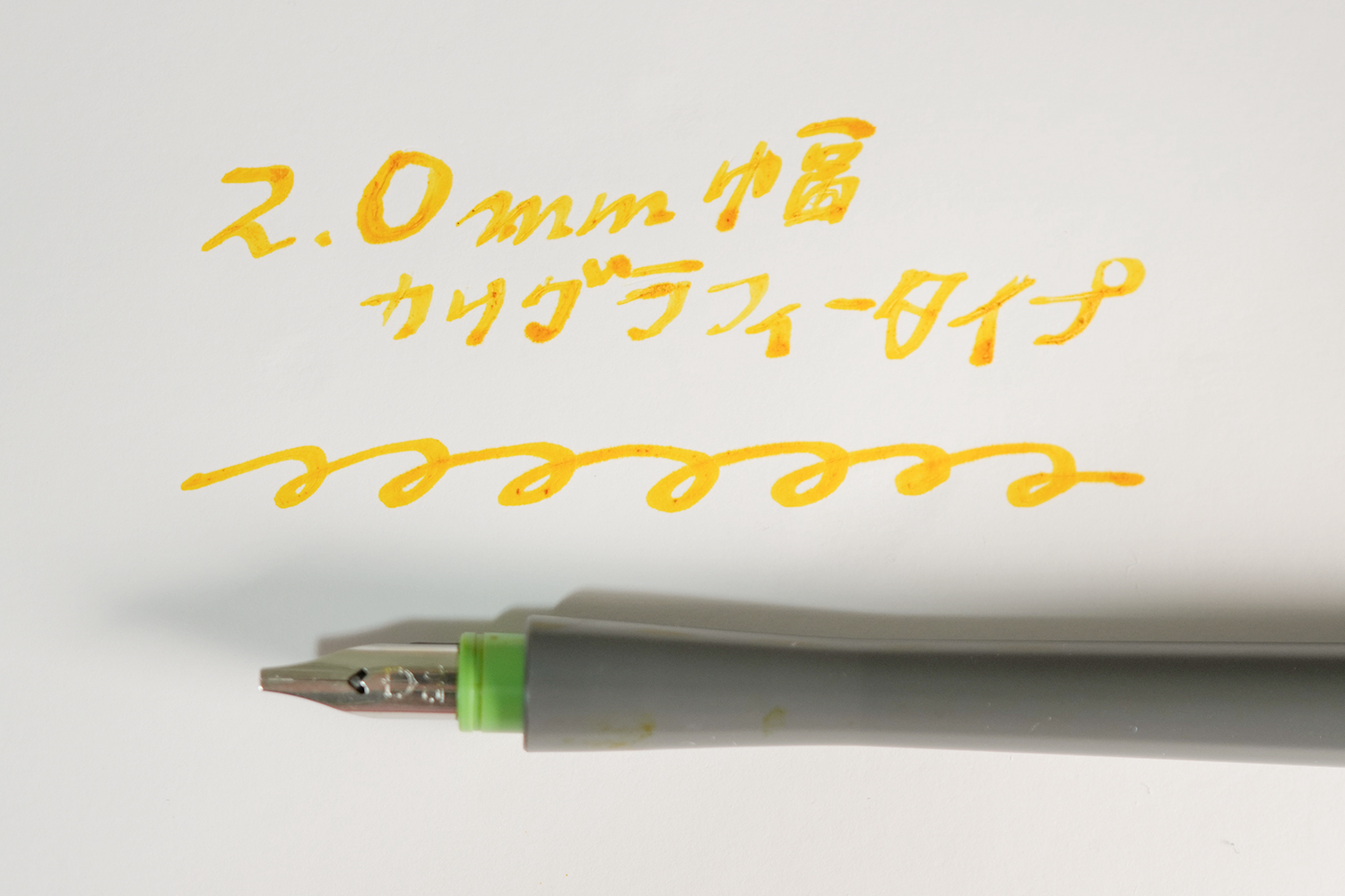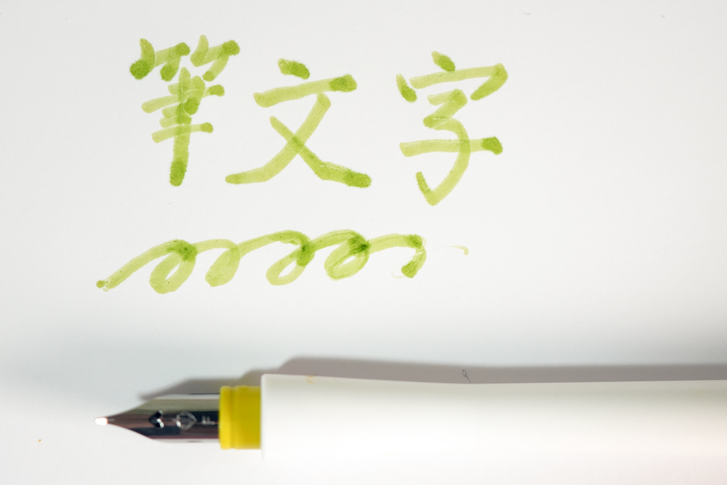 使い方は簡単です。万年筆インクなどの水性インクにペン先をひたし、余分なインクを瓶の縁でしごいて紙に書くだけです。