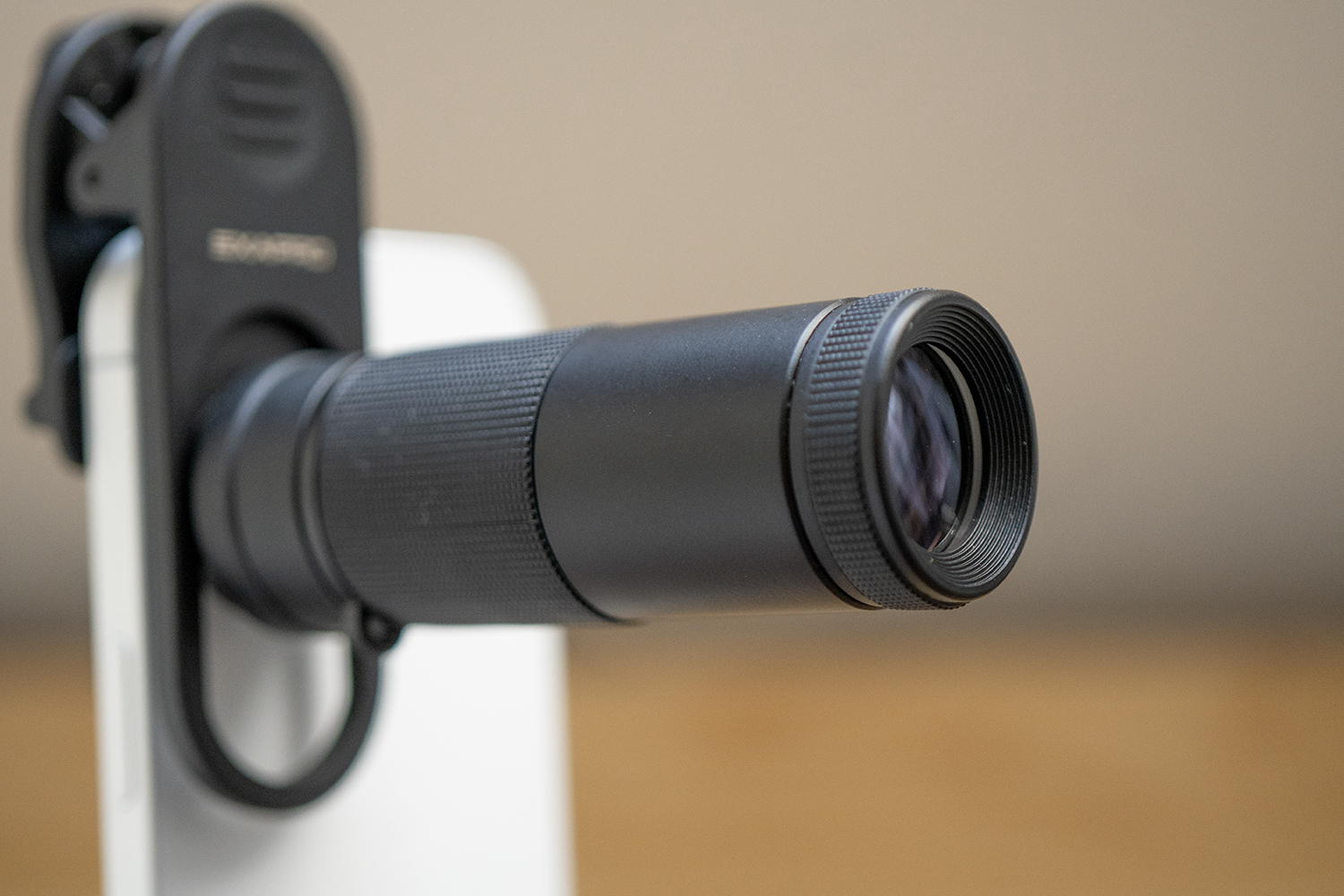 「EXAPRO クリップレンズ 望遠8倍」は、名前の通り倍率8倍※の望遠レンズです。レンズの先の部分を回してピントを合わせます。